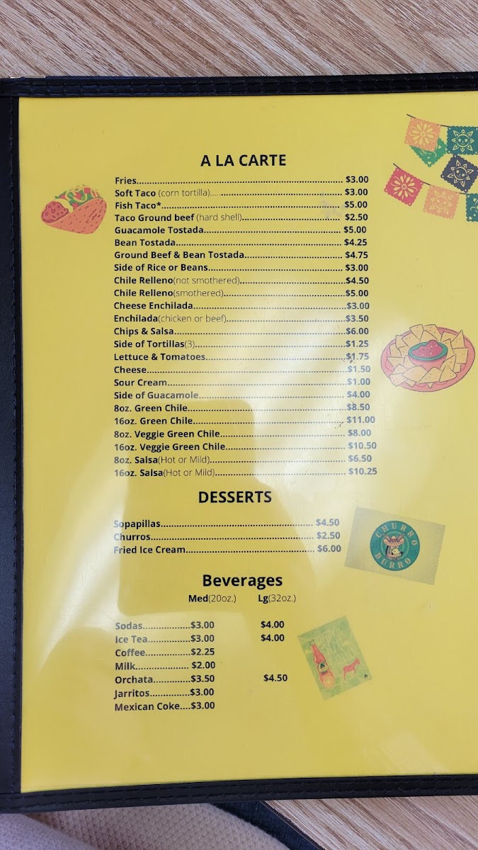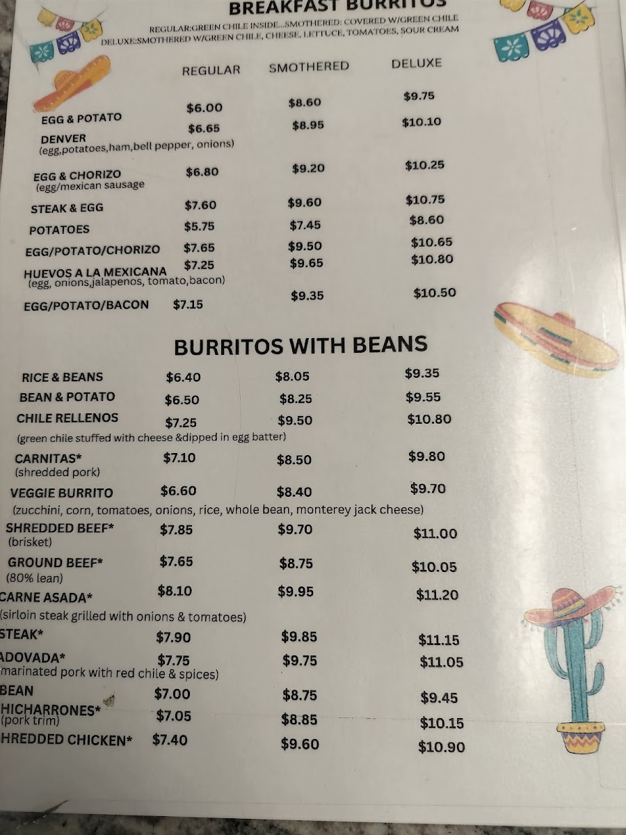 “ We thought we were going to the previous owner's drive-thru. As it turned out, we were thrilled with the breakfast burritos. We tried the egg and chorizo with Chile Verde. Yum! We have been back for lunch since then, through the drive-thru. We need to try going inside, because the burritos are fresh, tasty, and the Chile Verde is up to our Colorado standards. ”